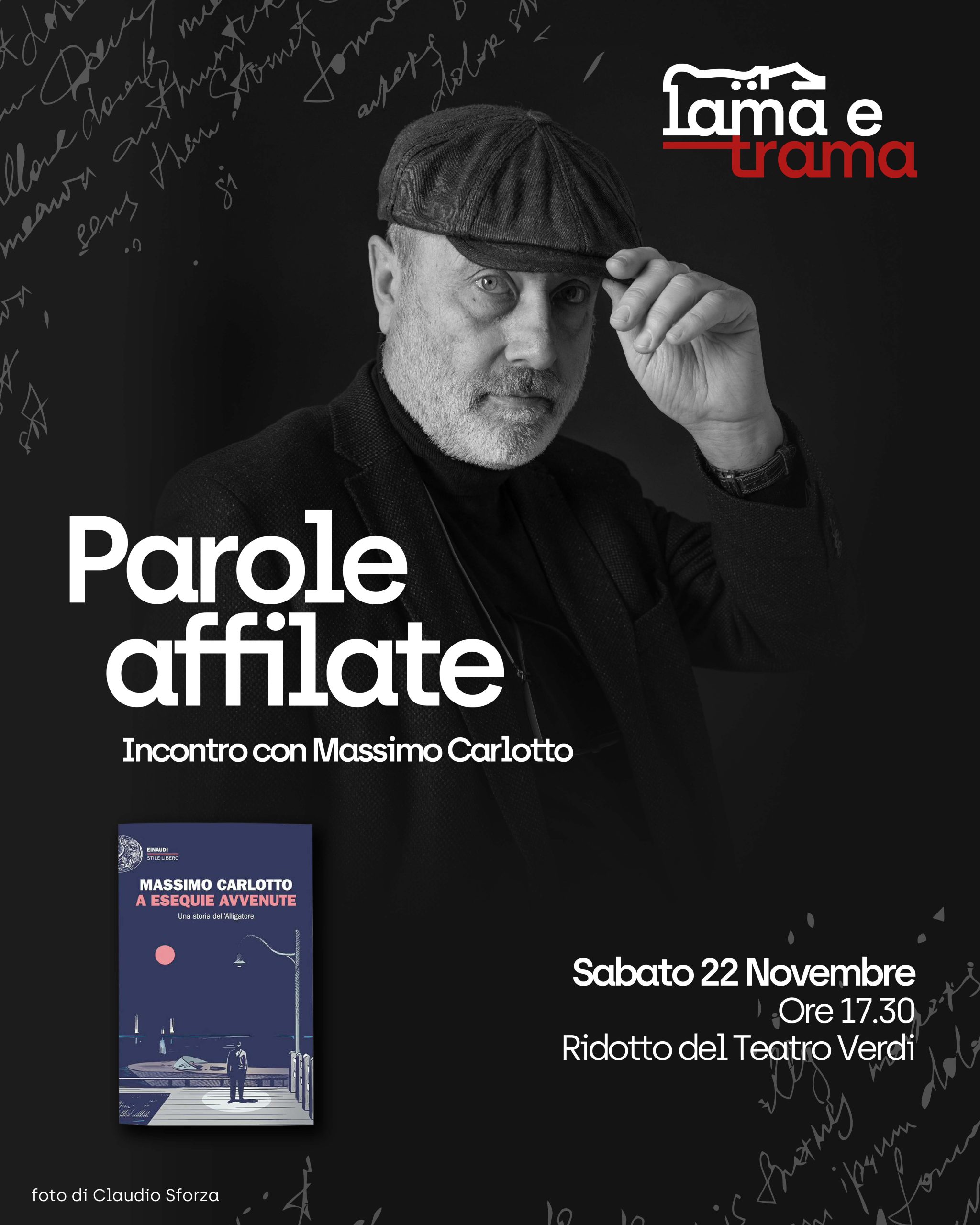 L’incontro con lo scrittore, saggista, sceneggiatore, giornalista, vuole essere un omaggio a Carlotto (già Premio Lama e Trama 2005 alla carriera) e al trentennale della sua saga dell’Alligatore (nel reading musicale delle 21.00) che vede ora una nuova storia: “A esequie avvenute”.
